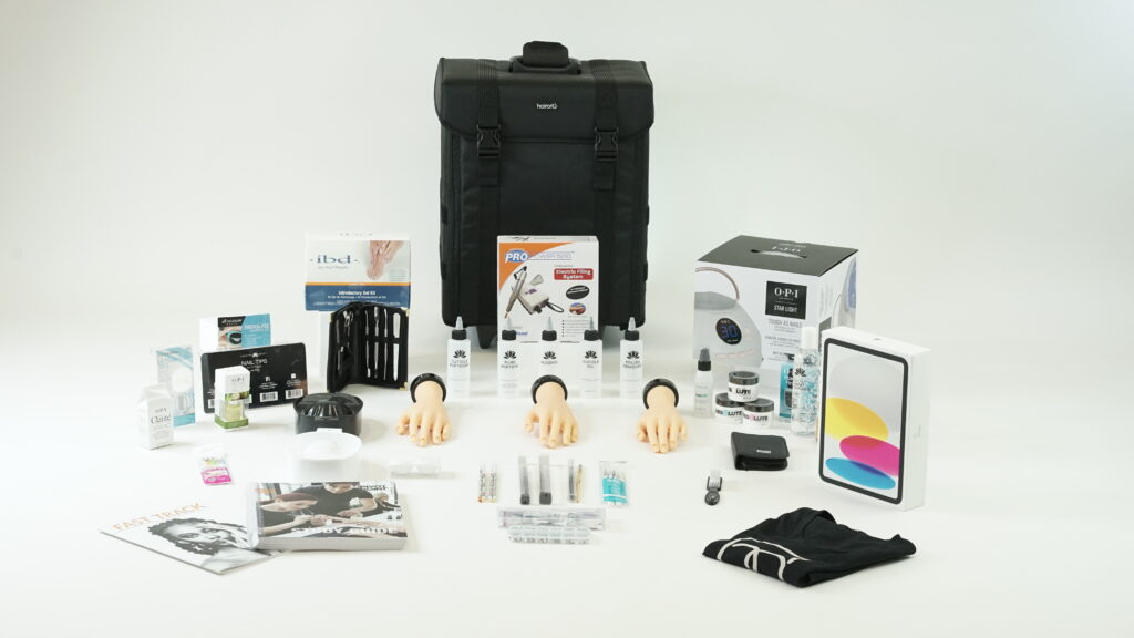 At Bellus Academy, we offer a Spa Nail Technician program in California and a Nail Technology program in Kansas. Both kits include technology tools like an iPad and study guides, uniforms, including T-shirts and smocks, personalized business cards, and a student ID. The other program-specific items include:
