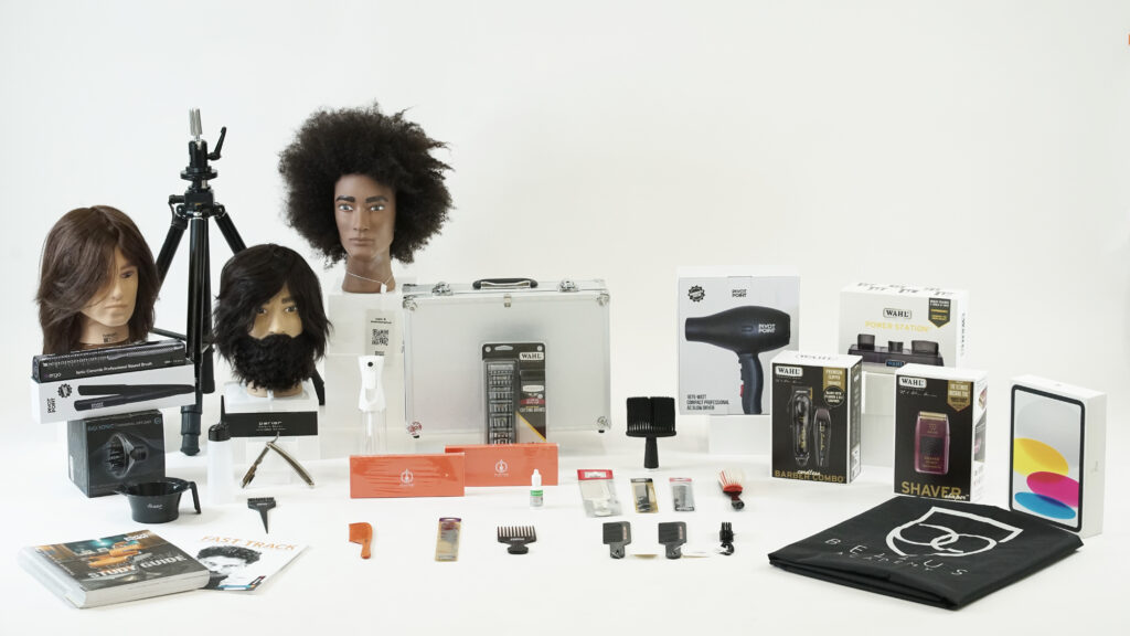 Bellus Academy also offers barbering programs for students in California. All students receive an iPad for accessing our digital learning platform and Bellus Academy T-shirts and jackets, as well as business cards and a student ID. The program-specific items include: