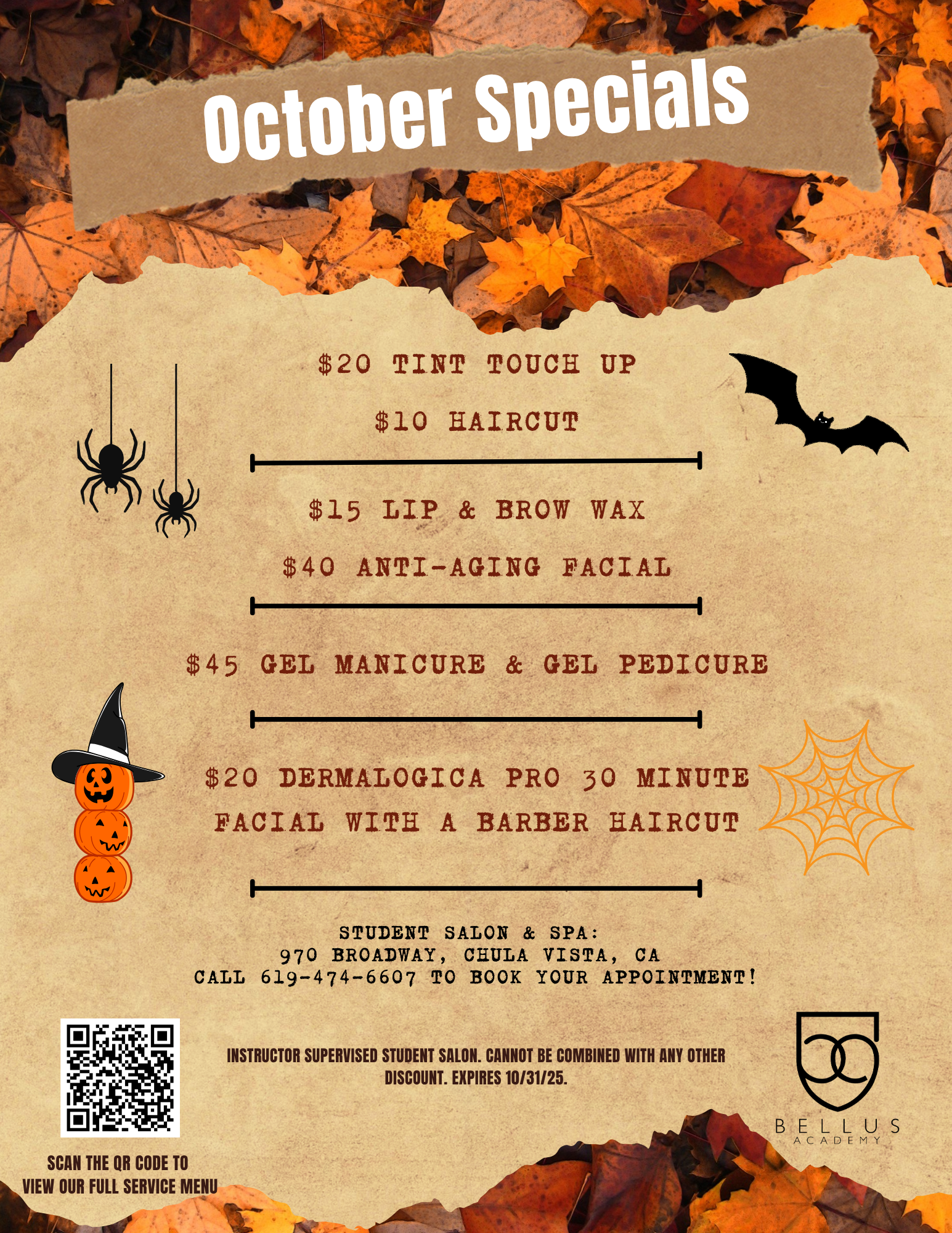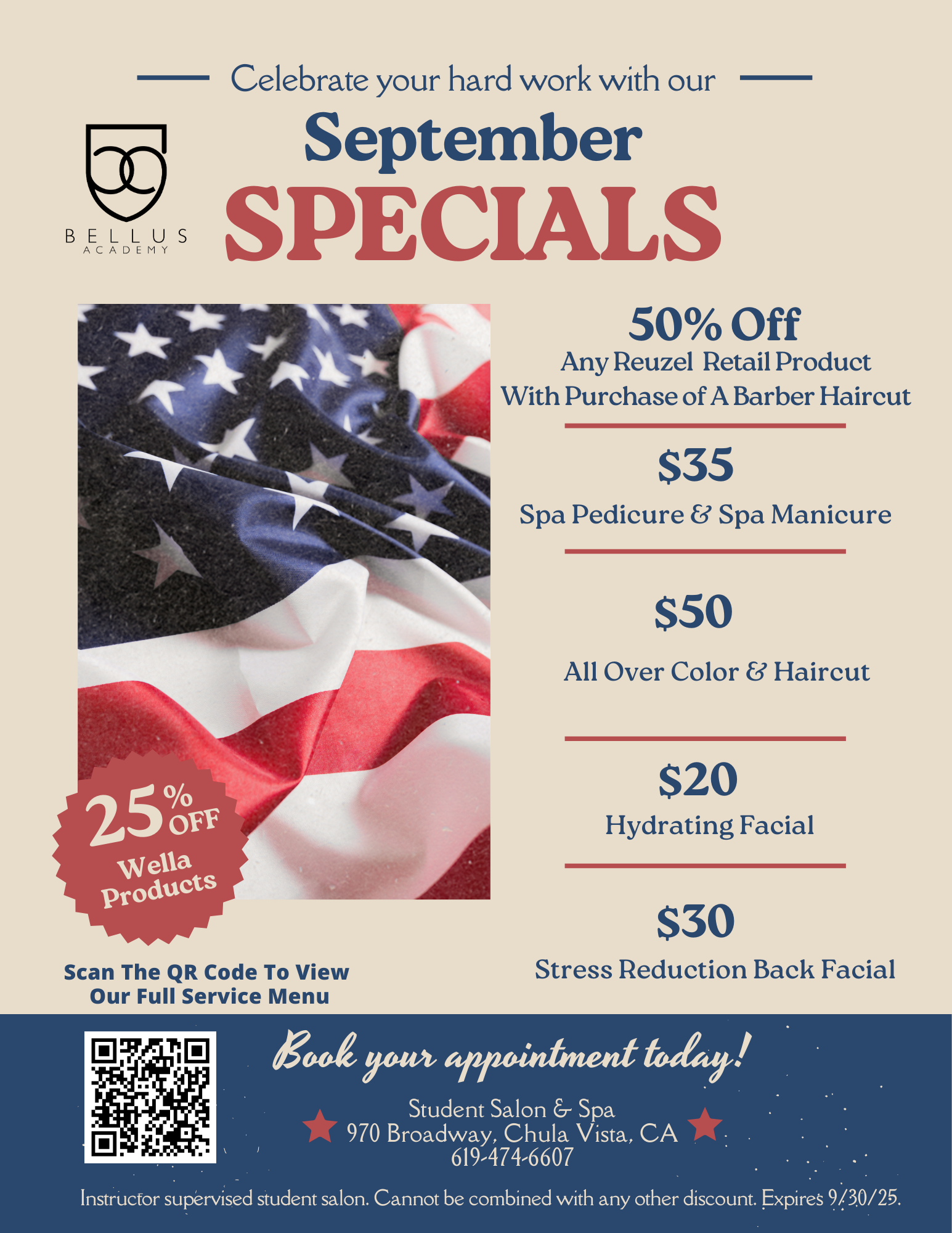 All work is performed by supervised students. Prices and availability of services are subject to change without notice. Requests for certain students are accepted but not guaranteed. Federal Law prevents us from disclosing information on individual students. Other information about our academy and policies can be found at bellusacademy.edu.