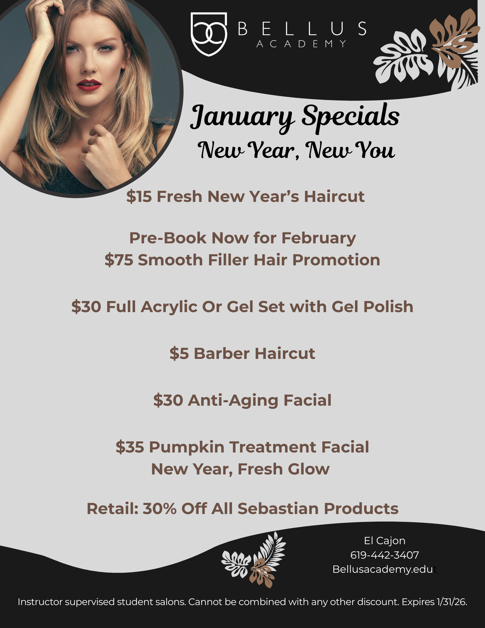 All work is performed by supervised students. Prices and availability of services are subject to change without notice. Requests for certain students are accepted but not guaranteed. Federal Law prevents us from disclosing information on individual students. Other information about our academy and policies can be found at bellusacademy.edu.