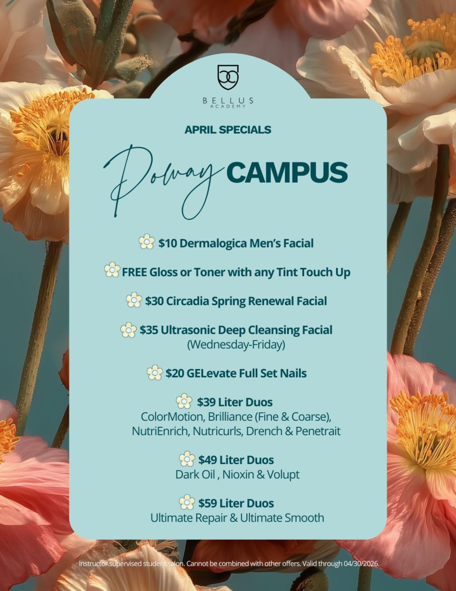 All work is performed by supervised students. Prices and availability of services are subject to change without notice. Requests for certain students are accepted but not guaranteed. Federal Law prevents us from disclosing information on individual students. Other information about our academy and policies can be found at bellusacademy.edu.